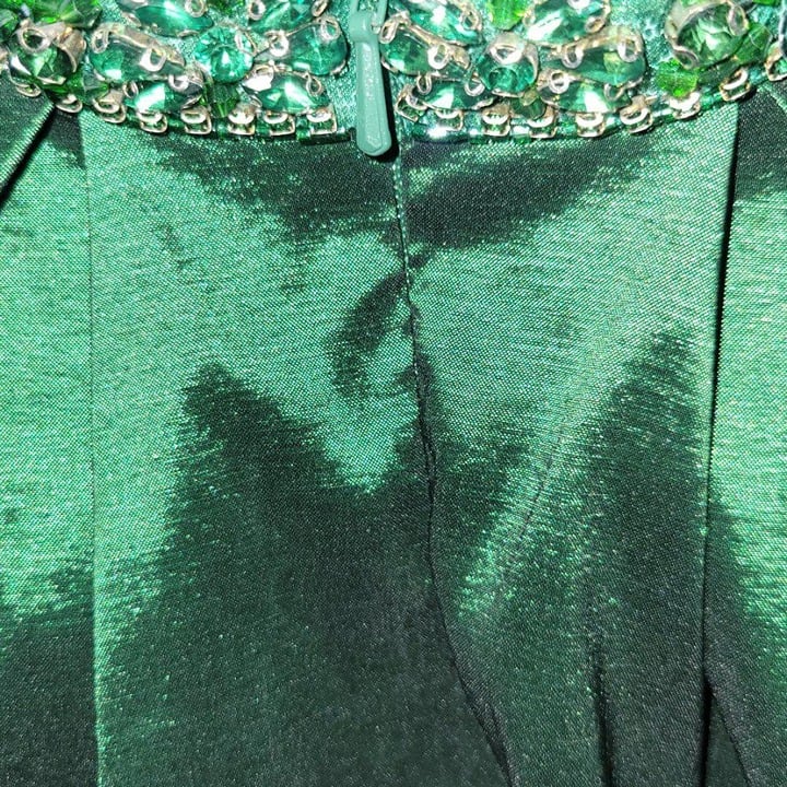 Stunning designer formal dress size 0. Worn once and is in excellent used condition. As you can see in the pictures, there is some slight discoloration inside the bust area from the black adhesive bra that were used. Could possibly come out, but I didn't even try since it doesn't affect the look of the dress. Paid $400. Perfect for any holiday party / new years / homecoming / winter formal / courtwarming dance etc...
