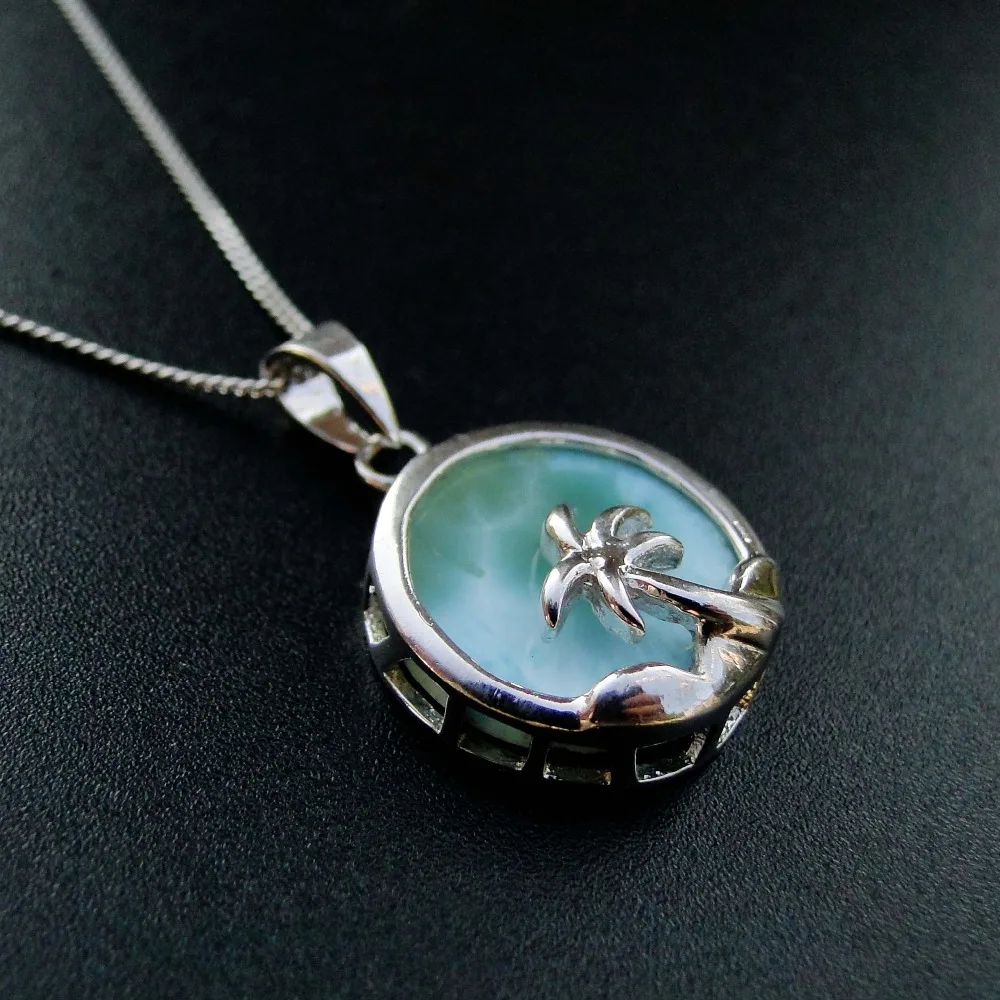 Larimar Jewelry: Silver Larimar Palm Tree Pendant