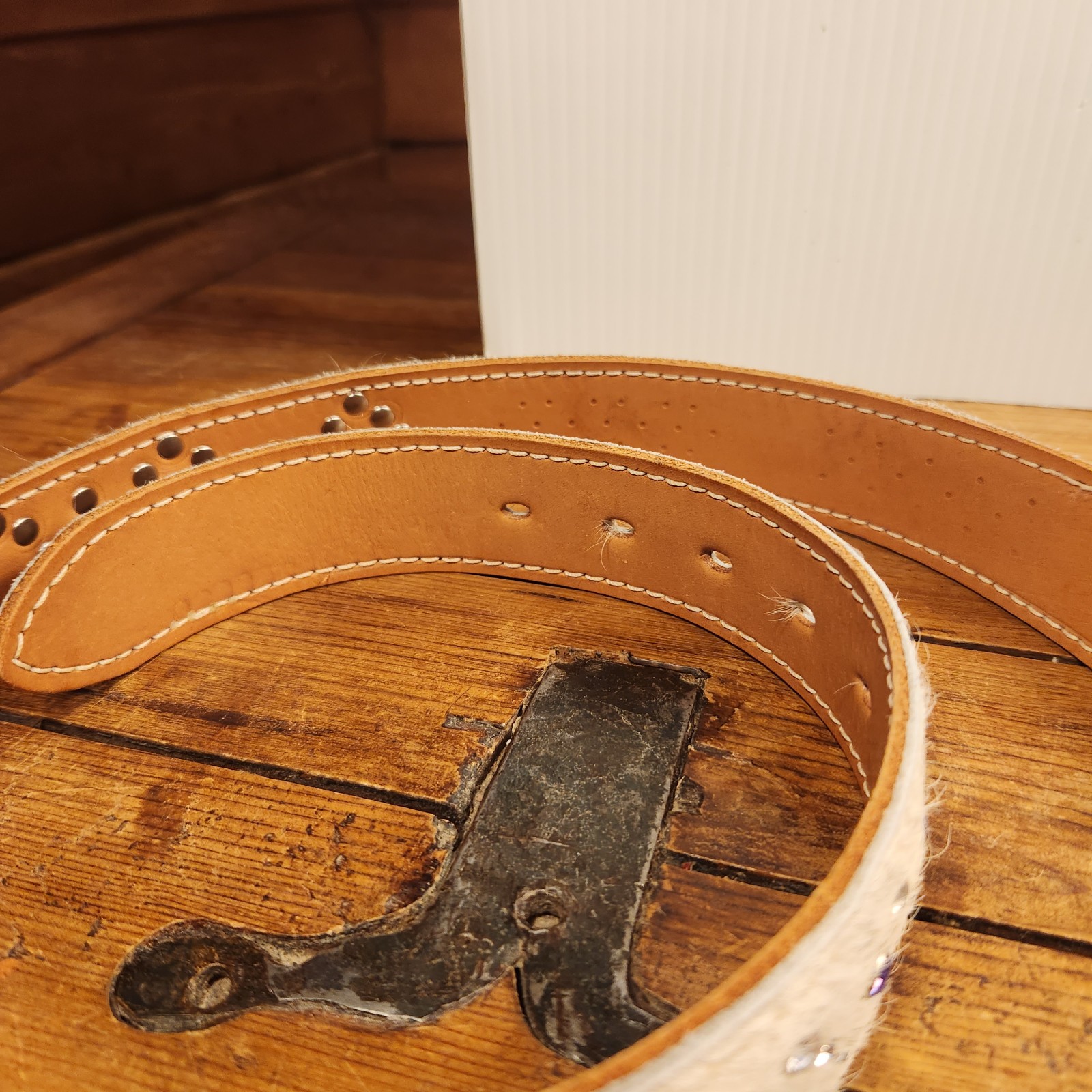 This Women's Belt with a Butterfly Buckle features a unique Animal Fur pattern, accented with Butterflies and Hearts. The Gold-White color palette adds a touch of elegance to the Western-inspired design. Made in the United States, this belt is adjustable and perfect for a waist size of 31-33 inches. The brand W offers a stylish and trendy accessory for women who appreciate a touch of Western flair in their outfit.