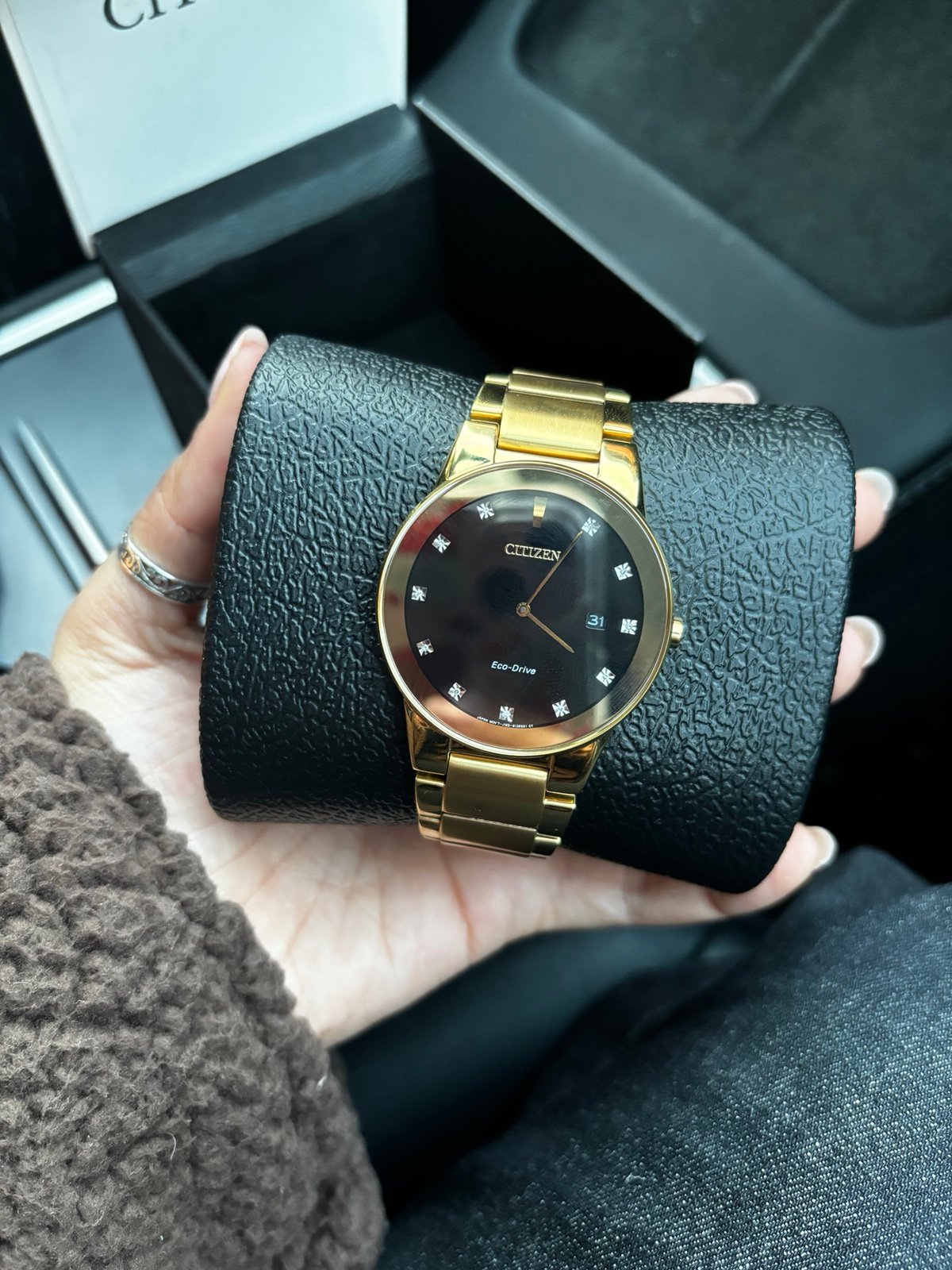This is a brand new gold citizen gold watch. I gifted this for my fiancé but we are getting married next summer so we are trying to save up for our wedding! It comes with extra links if needed. I bought this for $560 but I am asking $525, please send me a message and we can make a deal!