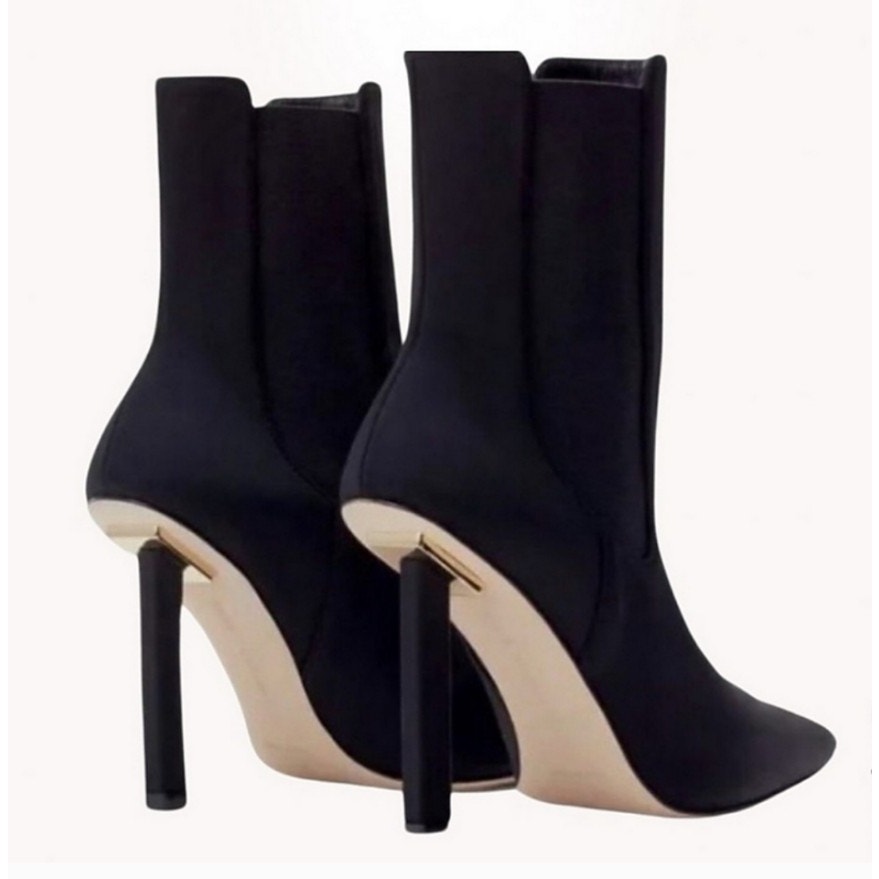 Good American Black Pointed Toe Kickstand Stiletto Heel Neoprene Chelsea Boot 11.5 NEW