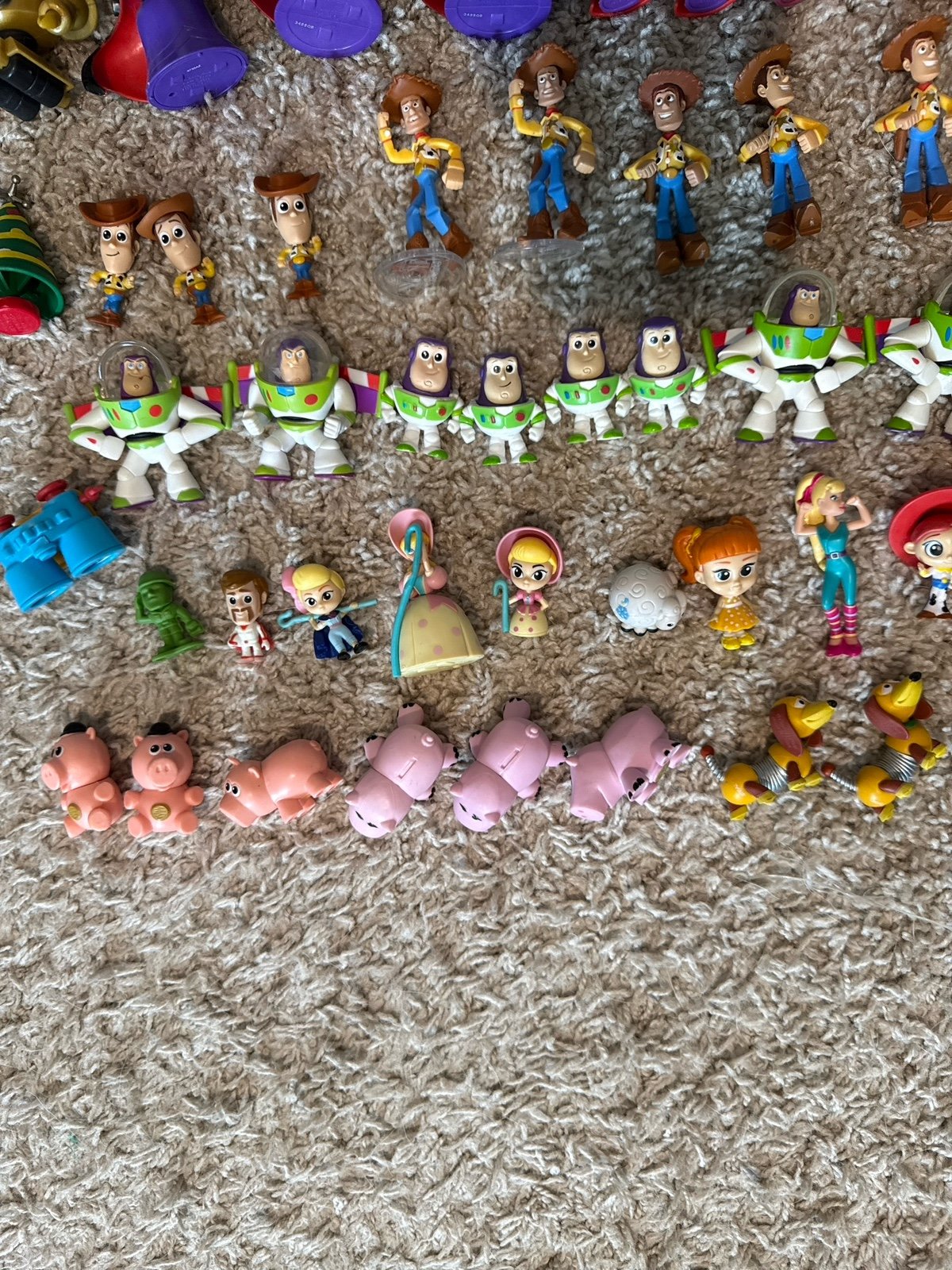 This is for a lot of 76 Disney/Pixar mini Toy Story figures. Each figure measures between an inch to 2 inches. Price is firm as it comes out to less than a $1 a figure. Please see pictures as figures are As Is.