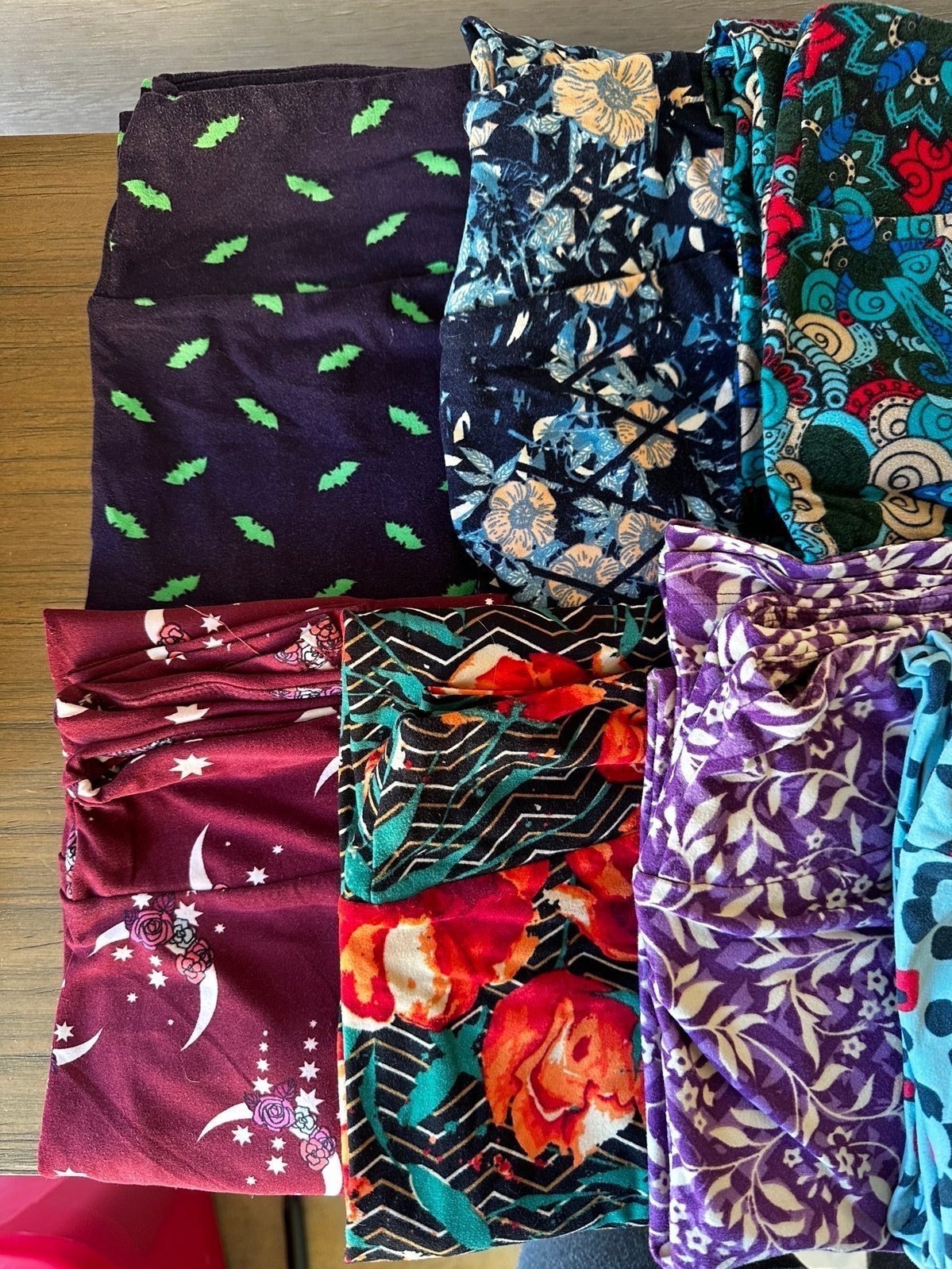 Sold as a lot of 14. All pre-loved but still have plenty of life left. Two are Disney-themed; evil queen and Mickey and friends. Stretchy. Tags say ‘One Size’. Very comfortable, in my opinion. 14 pieces @ $63, making them $4.50 each.