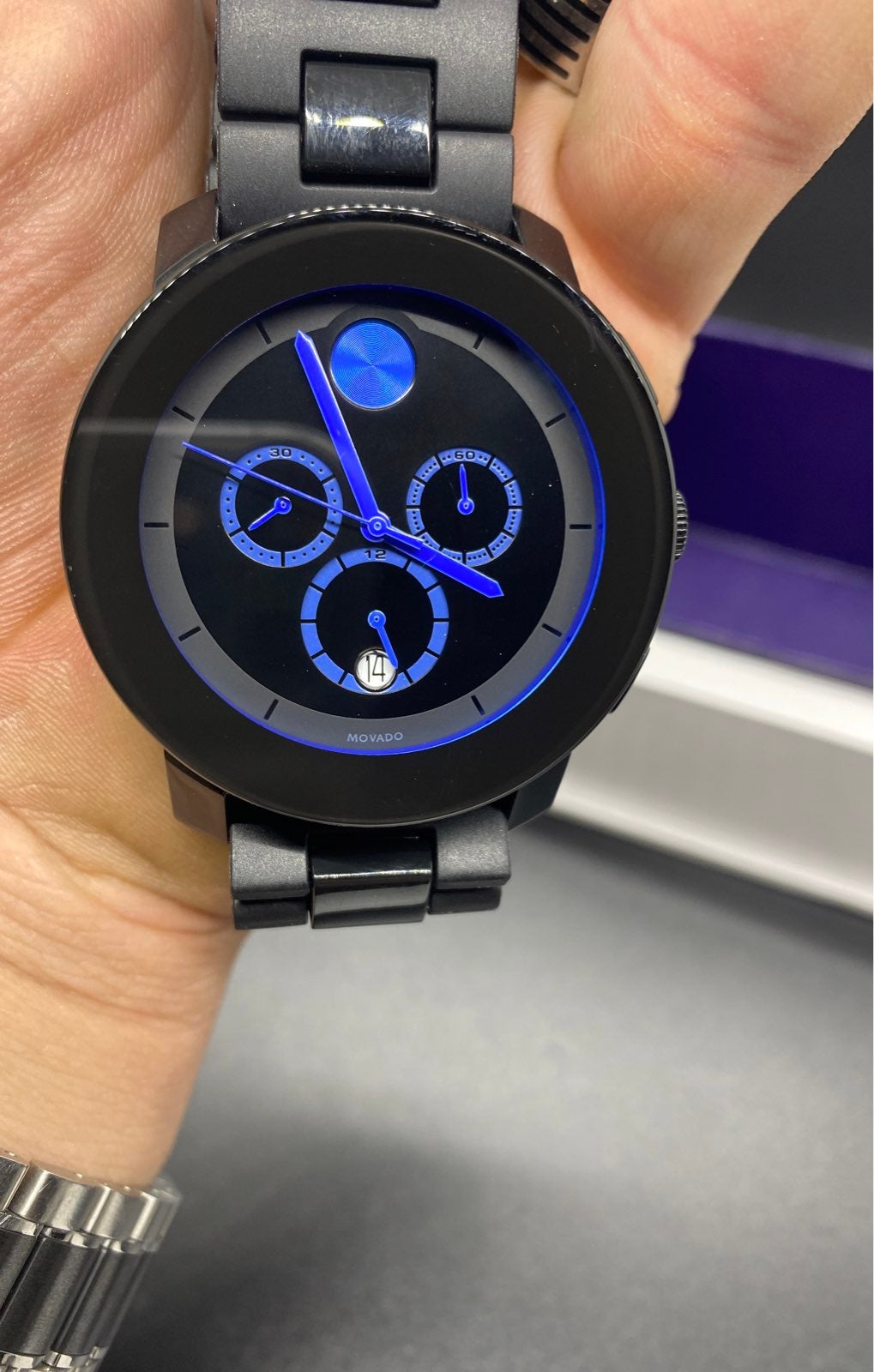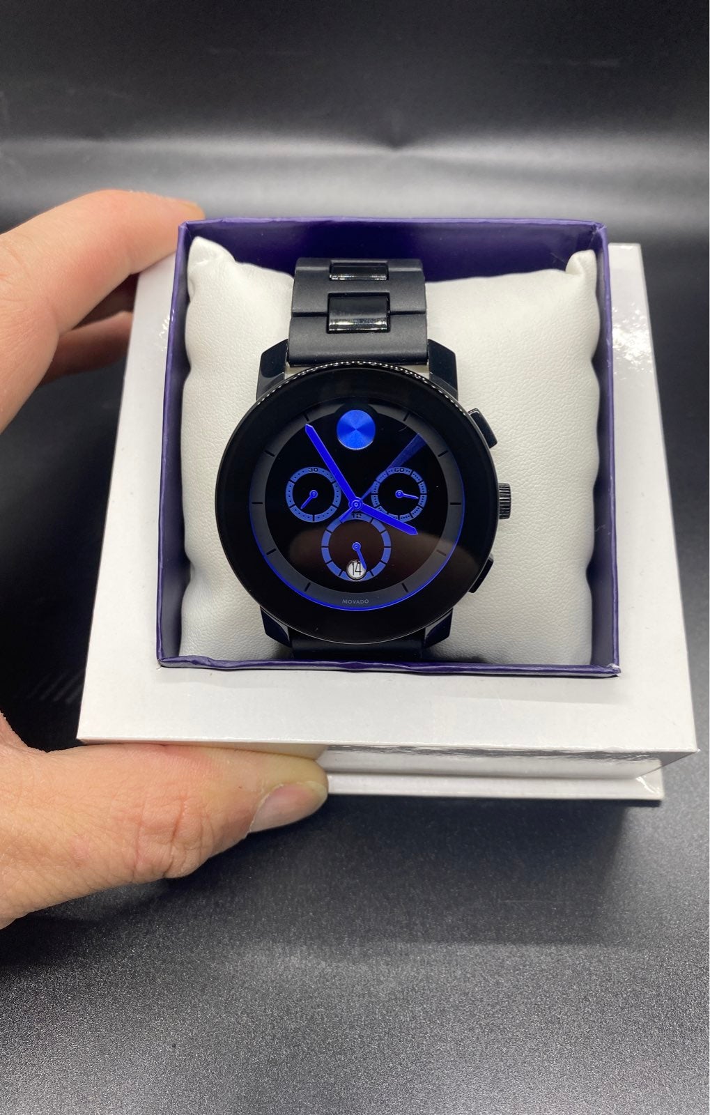 Movado Bold Black TR90 Chronograph Blue Hands Men's Watch 3600101