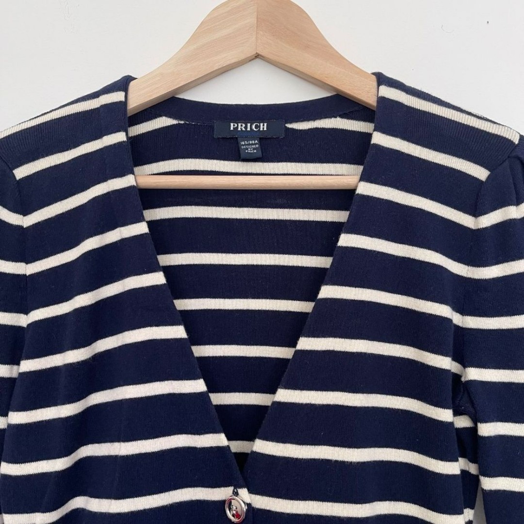 NWOT. PRICH V-Neck Striped Cotton Cardigan. Navy/White. Size: Medium