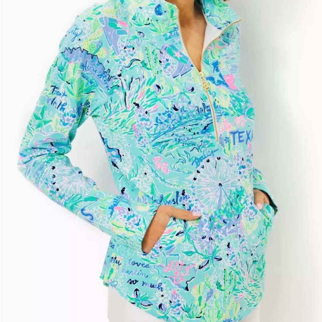 NWT Lilly Pulitzer Bayside Blue Lilly Loves Texas UPF 50+ Skipper Popover SZ S