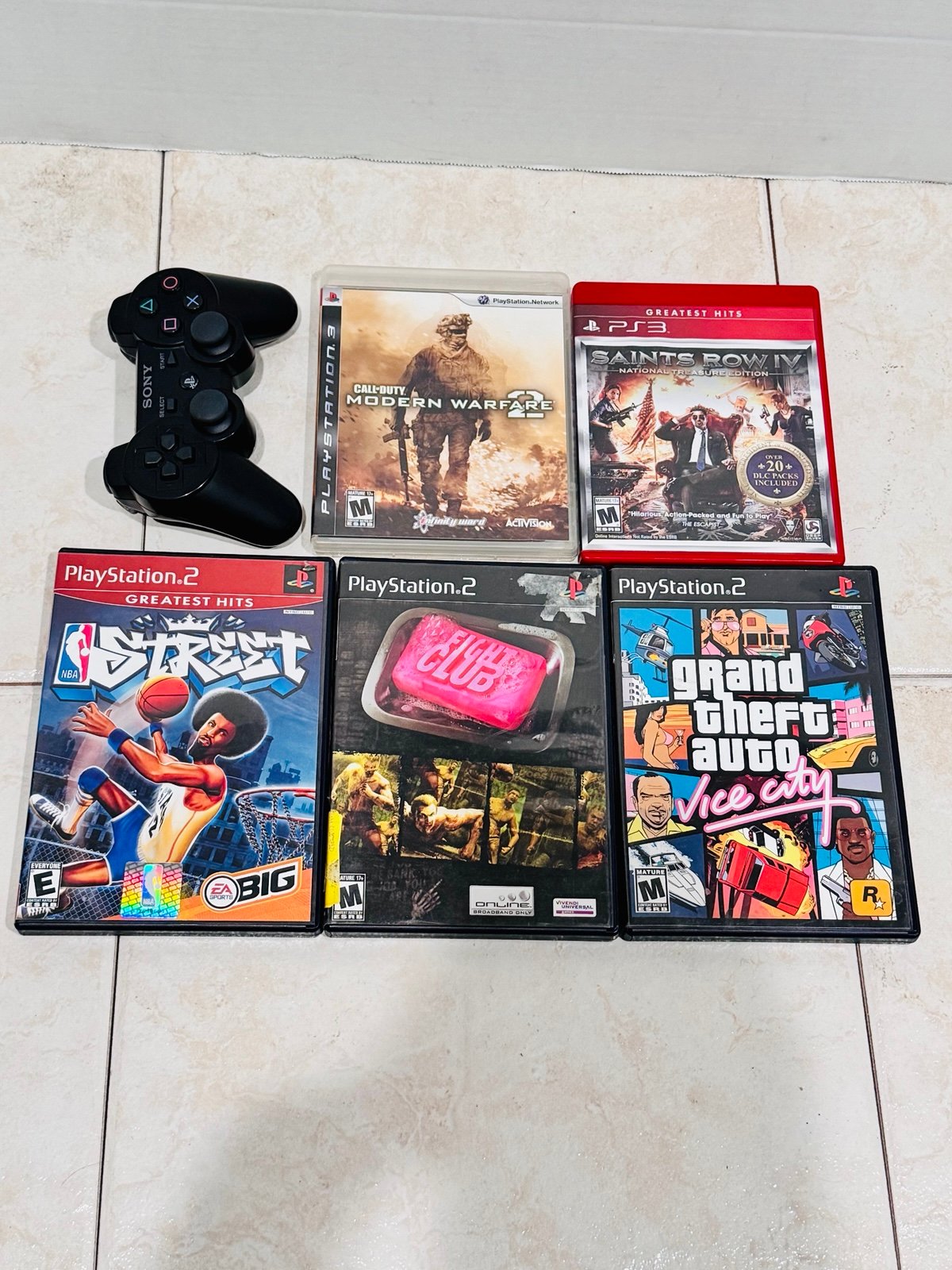 Sony PlayStation 3 PS3 Fat Backwards Compatible 80GB CECHE01 Video Game Console Bundle With 5 Games Cables & Wireless Controller. This is the backwards compatible PS3 console model CECHE01 with 80GBs. Being backwards compatible this can play PS1, PS2 & PS3 games. This comes with 5 games (3 PS2 & 2 PS3), Power supply, HDMI cables, Controller charging cable & DualShock 3 wireless controller OEM. Console works great fully tested the photos above are the games included being played. I also have video of this working. This does have many scratches mostly on the top of the console but you can always buff out many of the scratches. This comes with five video games, including PS2 Grand Theft Auto Vice City, PS2 NBA Street, PS2 Fight Club, PS3 Call Of Duty Modern Warfare 2 & PS3 Saints Row IV.