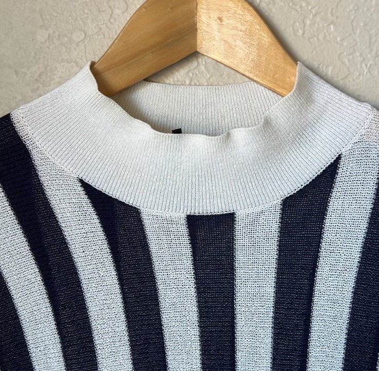 Beautiful new sweater! For all seasons, you can dress this sweater up or down! Unique and eye catching with a lot of personality. Somewhat of a mock neck style! Never worn.