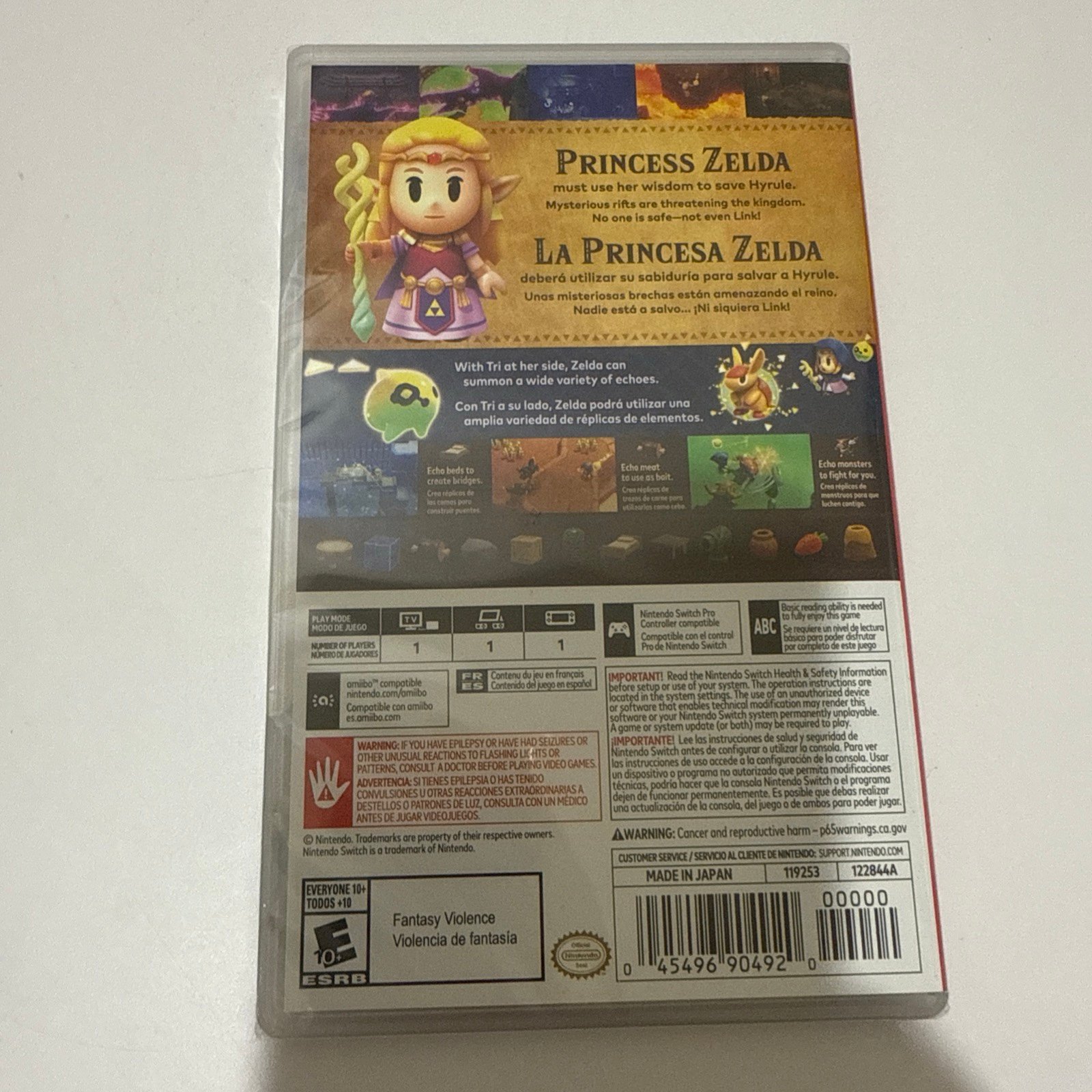 “The Legend of Zelda: Echoes of Wisdom" for the Nintendo Switch is a video game published by Nintendo Games. It is part of the popular Legend of Zelda series and is rated E10+ (Everyone 10+). The game offers a captivating experience filled with action, adventure, and puzzle-solving as players navigate through the world of Hyrule. With the Nintendo Switch's portability and versatility, players can enjoy the timeless tale of Link and his journey to save the kingdom wherever they go.