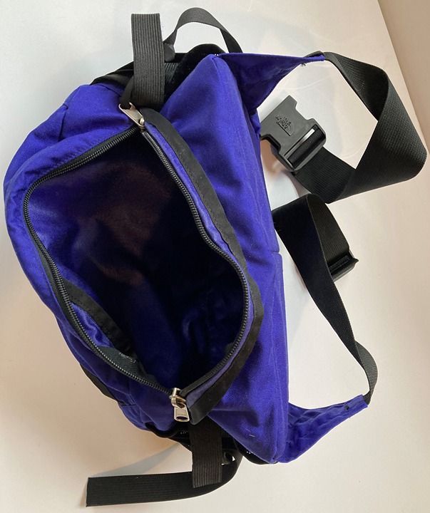 The North Face lumbar pack dark blue purple adjustable bottle pouch hip waist strap zippers work zipper padded vintage 1990s 90s zippered zip hike hiking outdoor outdoors active sport sports recreation carry hydration bag